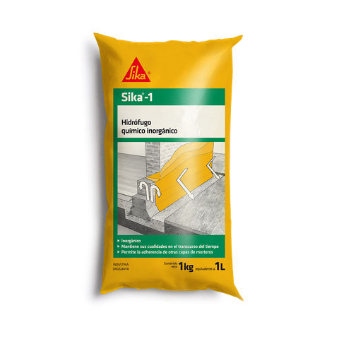Sika®-1 es una suspensión coloidal de materiales inorgánicos, líquida viscosa, de color amarillo pálido. Por poseer partículas muy finas, se distribuye perfectamente dentro del mortero, obteniéndose así el efecto impermeabilizante. Sika®-1 reacciona con la cal que libera el cemento Pórtland durante su hidratación formando compuestos insolubles que obturan los poros y capilares del mortero.